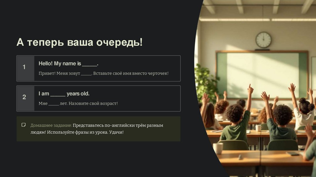 Урок 1: Привет! Меня зовут…Мне … лет.