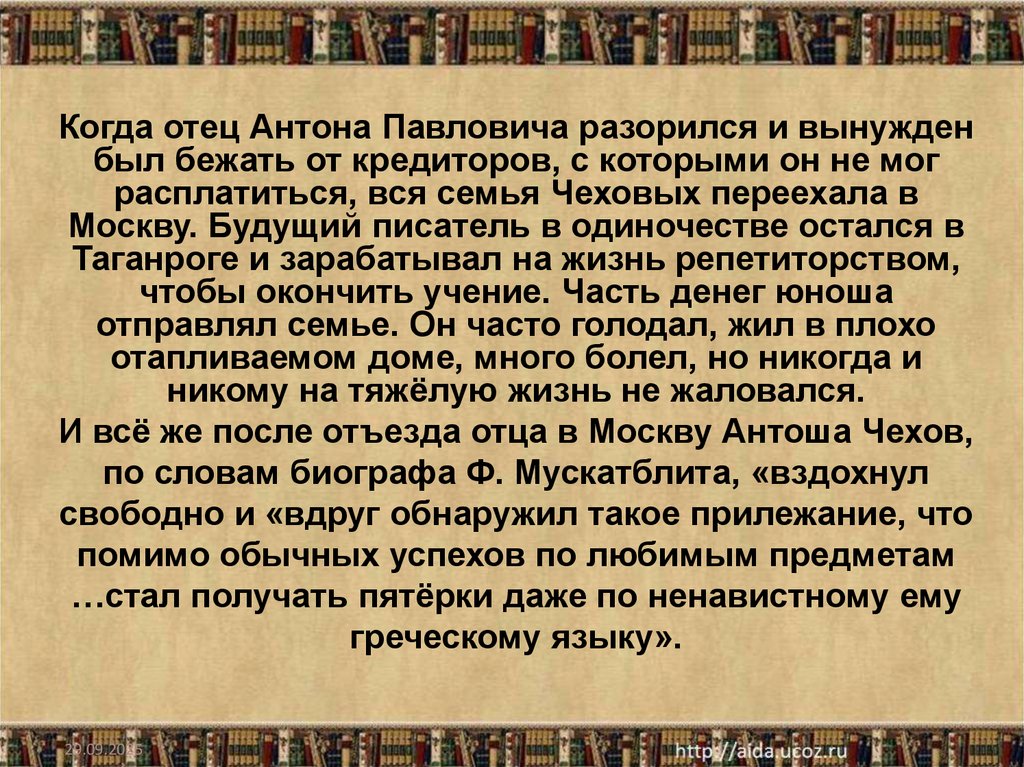 Когда отец Антона Павловича разорился и вынужденбыл бежать от кредиторов, с которыми он не мог