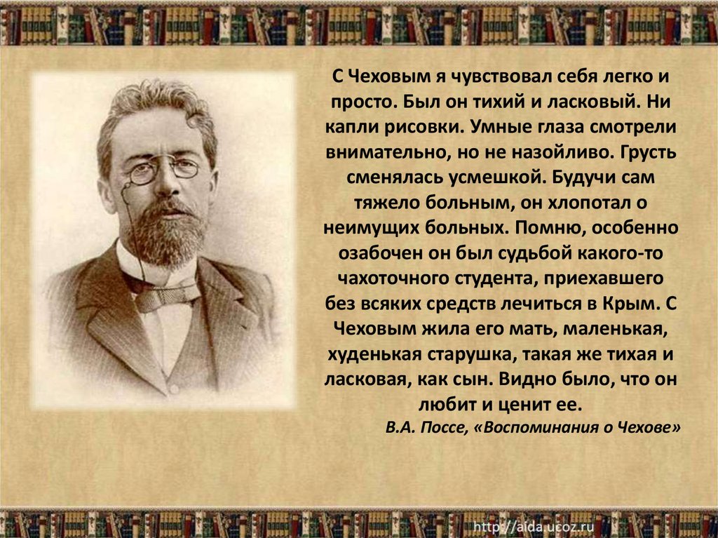 С Чеховым я чувствовал себя легко ипросто. Был он тихий и ласковый. Ни
