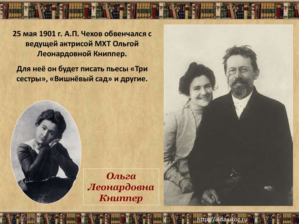 25 мая 1901 г. А.П. Чехов обвенчался сведущей актрисой МХТ Ольгой