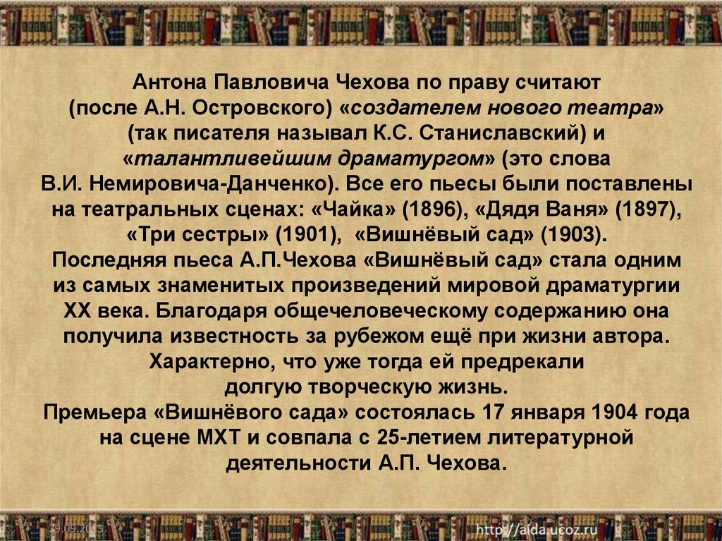 Антона Павловича Чехова по праву считают(после А.Н. Островского) «создателем нового театра»