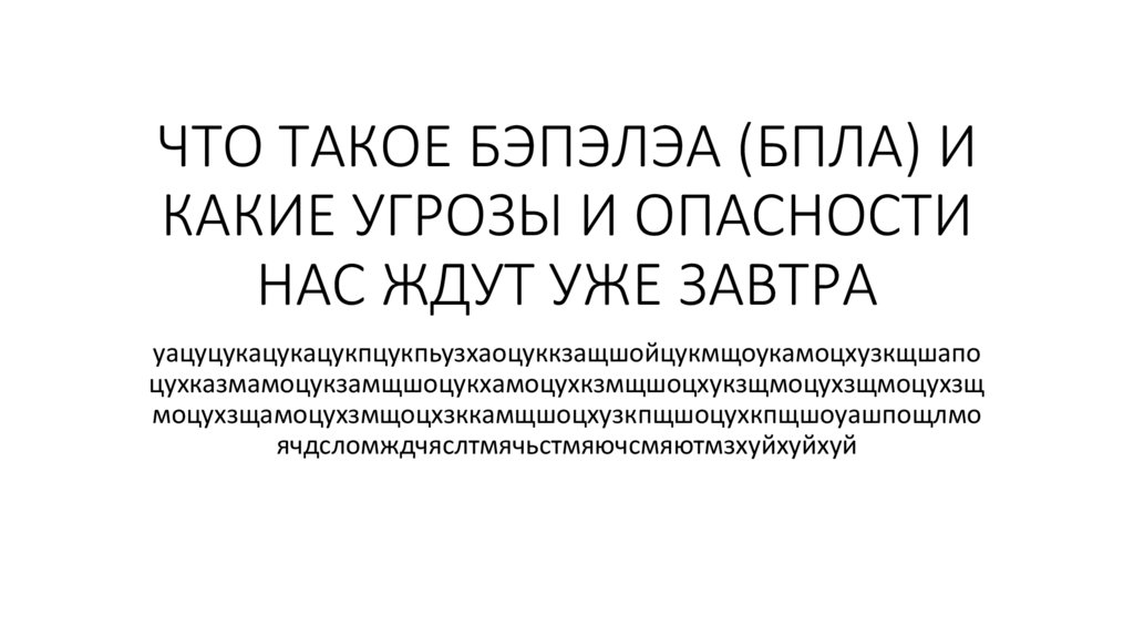 1. ЧТО ТАКОЕ БЭПЭЛЭА (БПЛА) И КАКИЕ УГРОЗЫ И ОПАСНОСТИ НАС ЖДУТ УЖЕ ЗАВТРА