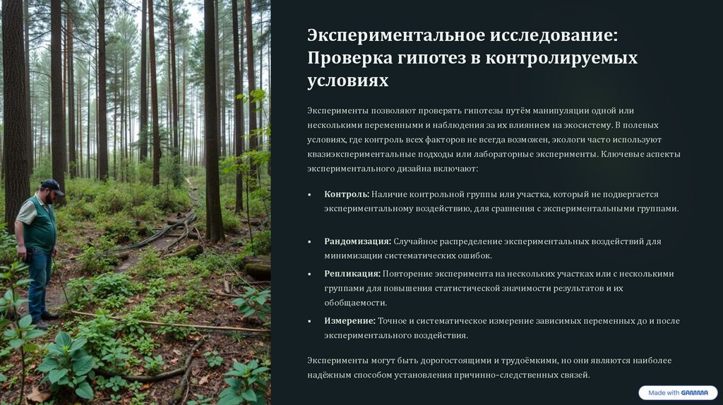 несколькими переменными и наблюдения за их влиянием на экосистему. В полевых