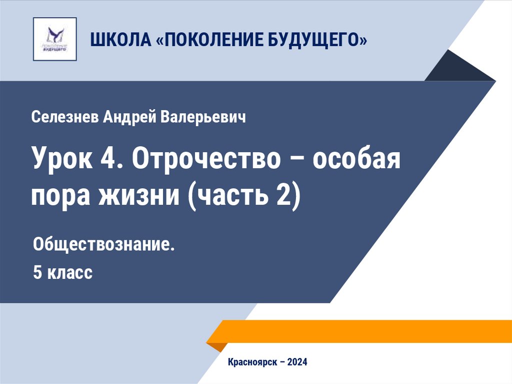 ШКОЛА «ПОКОЛЕНИЕ БУДУЩЕГО»Селезнев Андрей Валерьевич