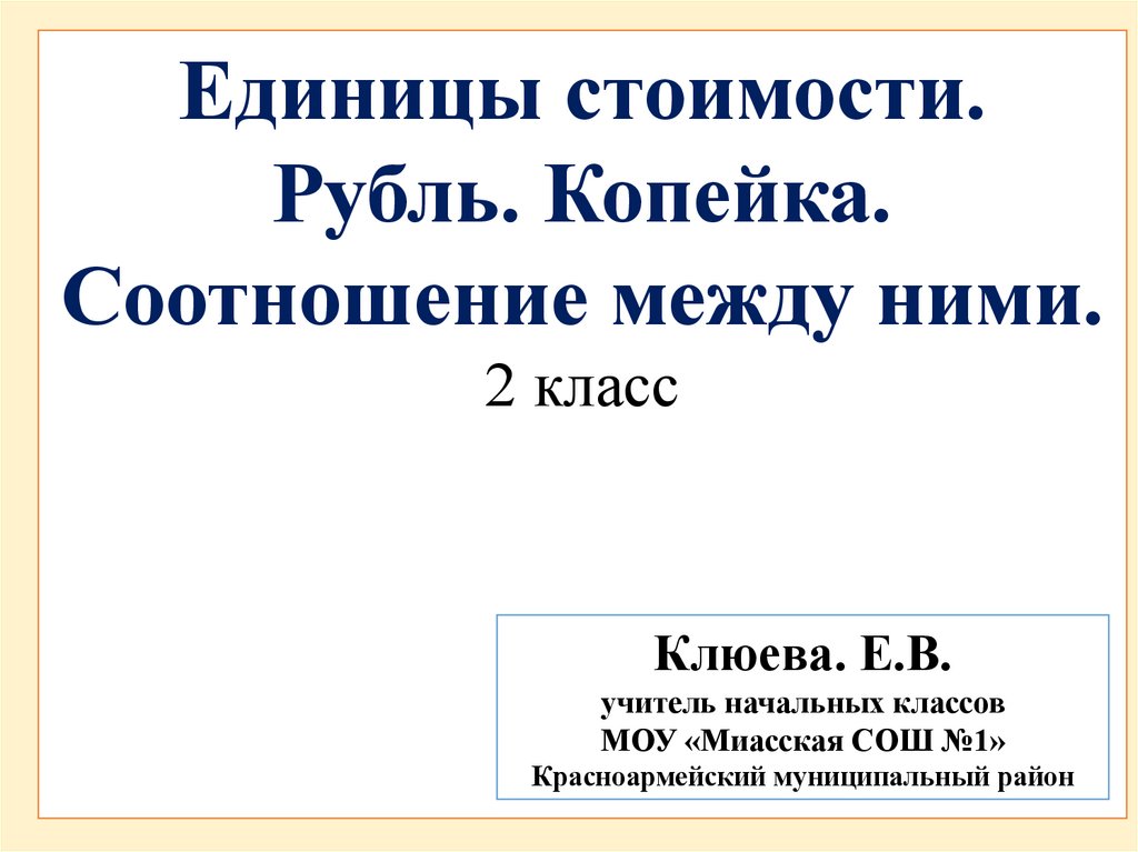 Единицы стоимости.Рубль. Копейка.