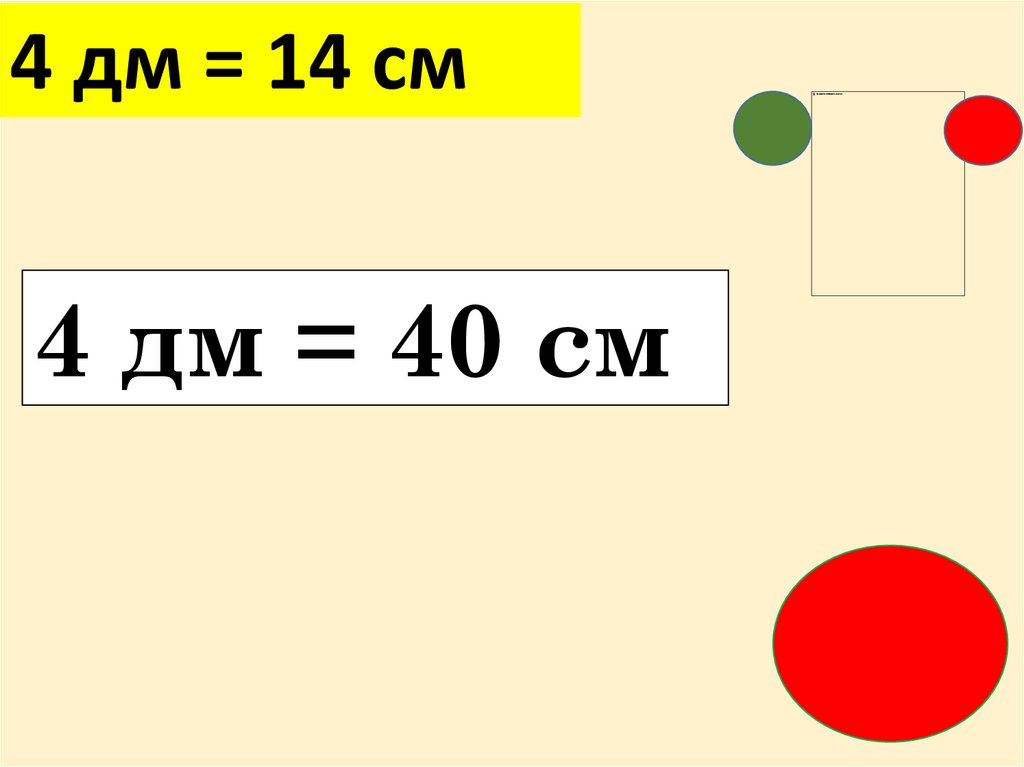 4 дм = 14 см4 дм = 40 см