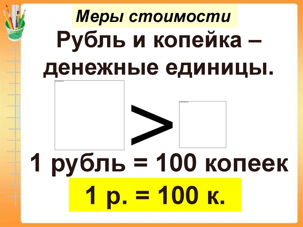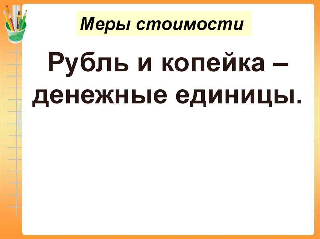 Меры стоимостиРубль и копейка –