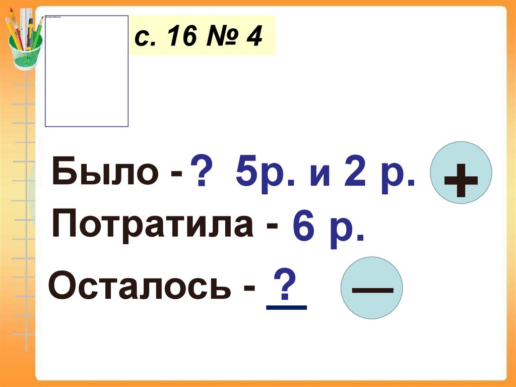 с. 16 № 4Было - ? 5р. и 2 р.