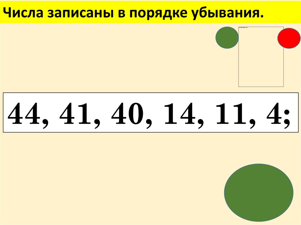 Числа записаны в порядке убывания.44, 41, 40, 14, 11, 4;