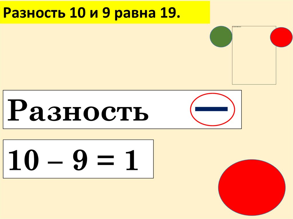 Разность 10 и 9 равна 19.Разность