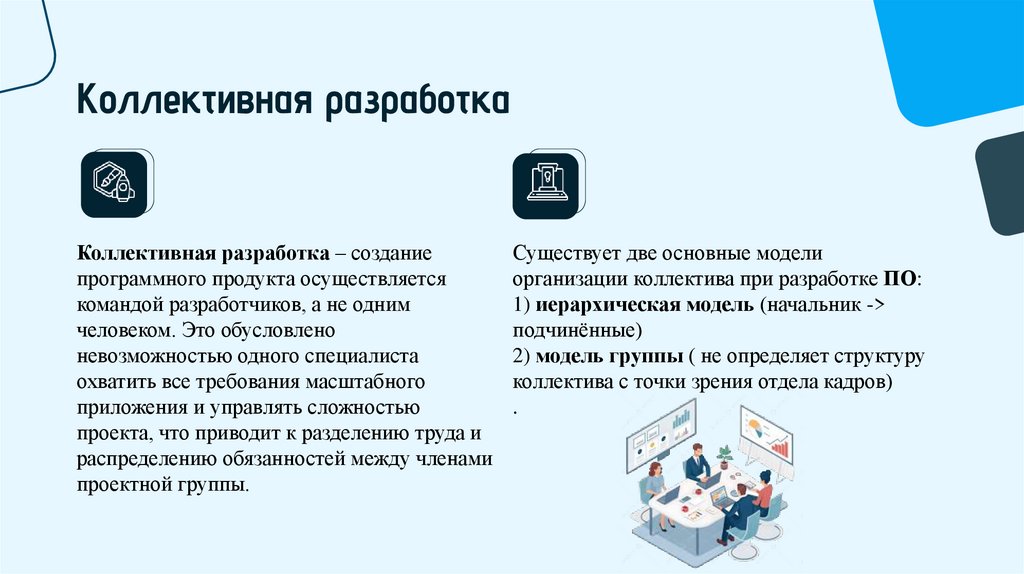Модели коллективов разработчиковРазработки программы в зависимости от количества участников