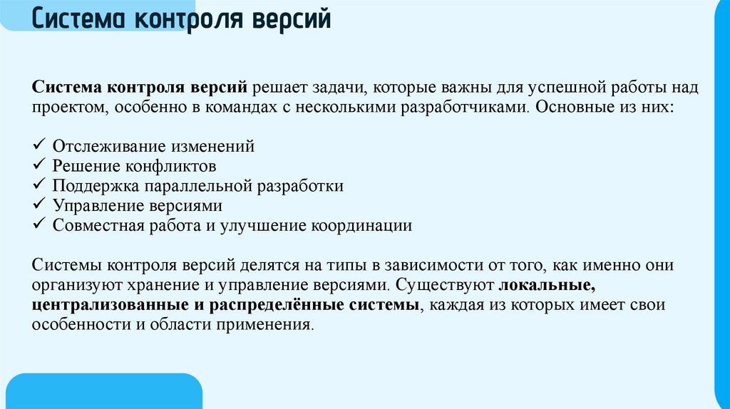 Система контроля версийСистема контроля версий решает задачи, которые важны для успешной работы над