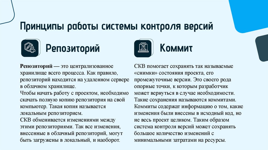 Распределённые системы контроля версий — более продвинутый и гибкий подход.