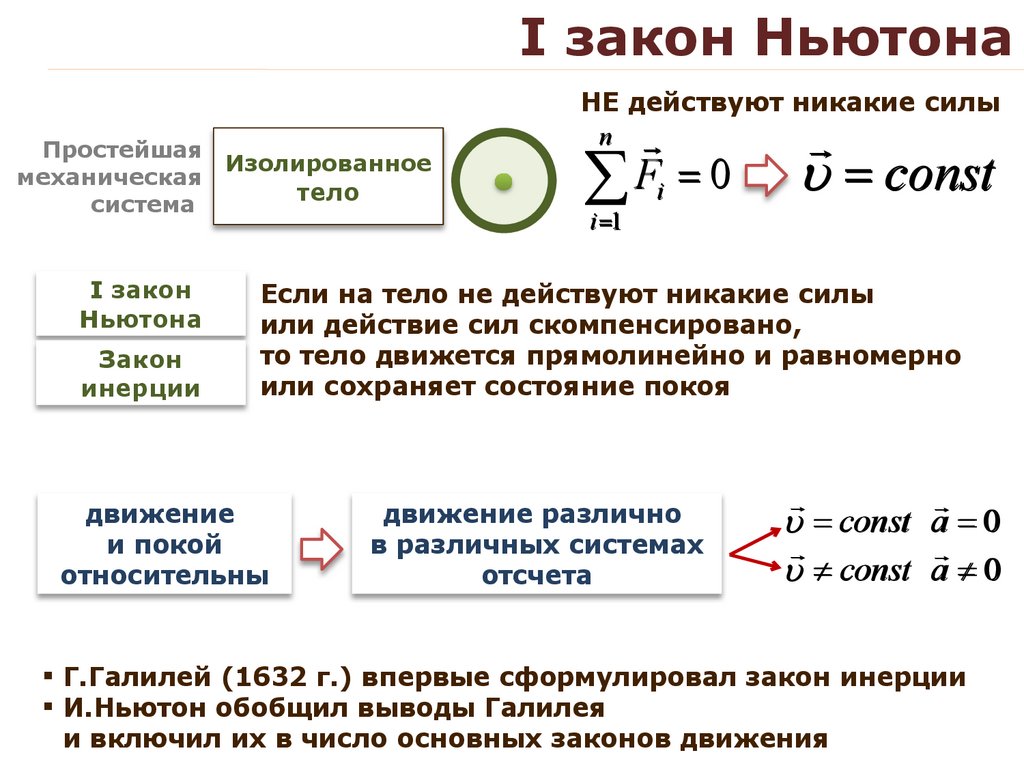 Г.Галилей (1632 г.) впервые сформулировал закон инерции