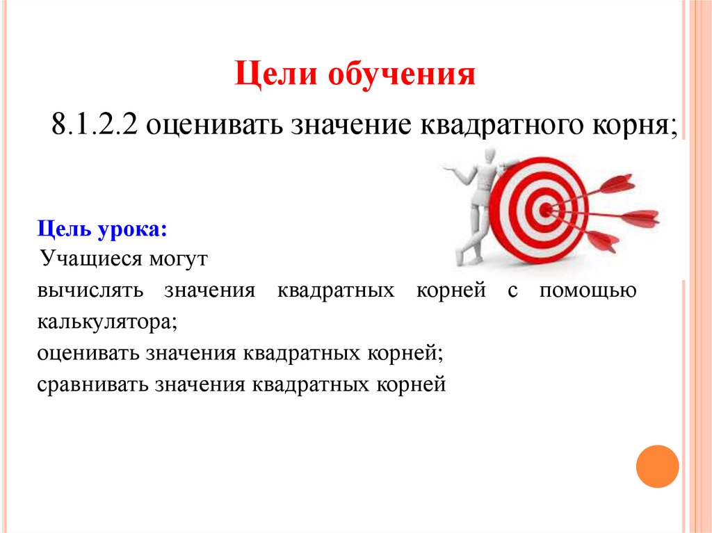 Цели обучения8.1.2.2 оценивать значение квадратного корня;