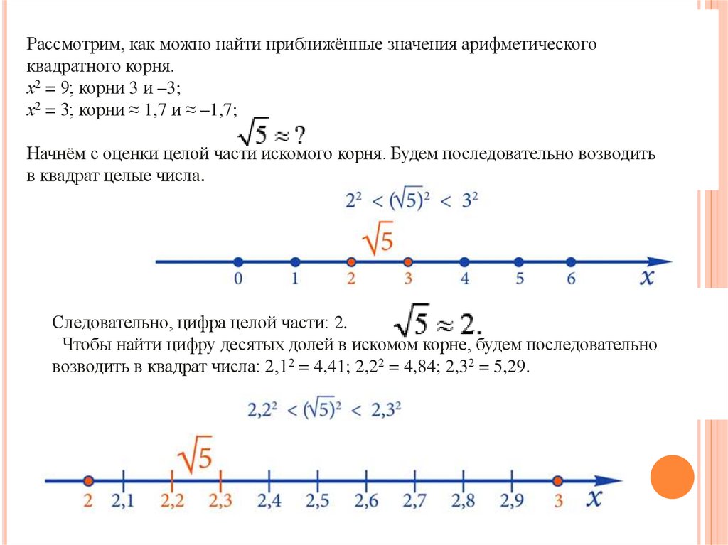 Рассмотрим, как можно найти приближённые значения арифметическогоквадратного корня.