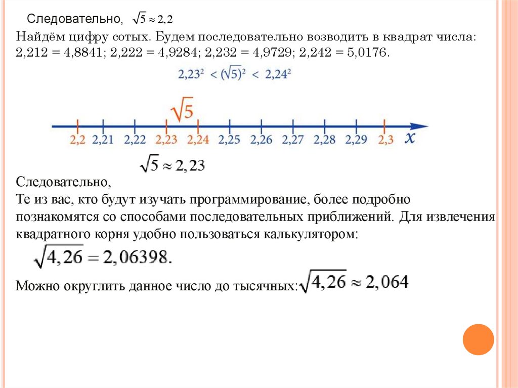 Следовательно,Найдём цифру сотых. Будем последовательно возводить в квадрат числа: