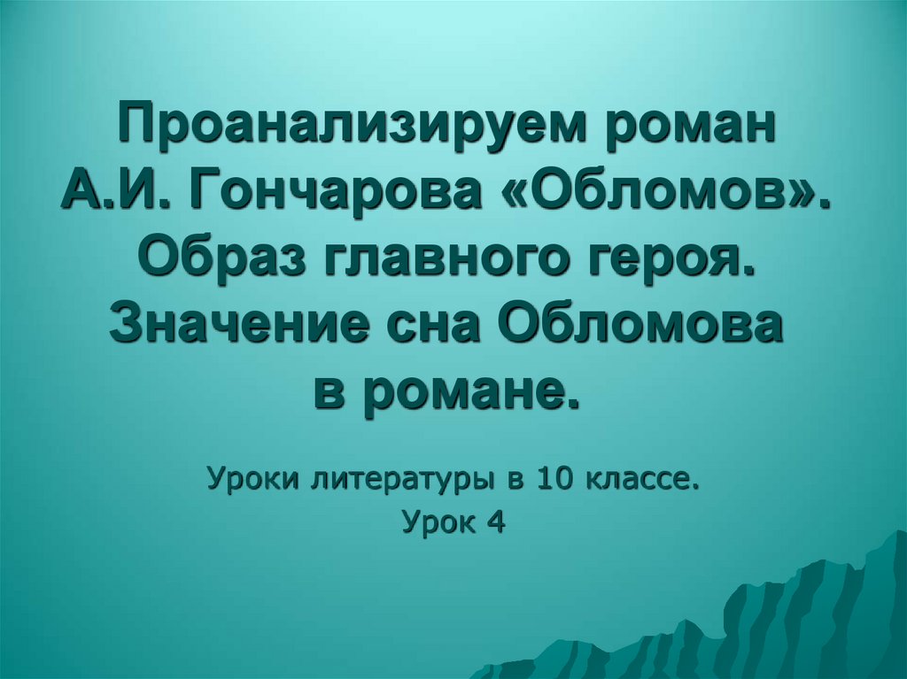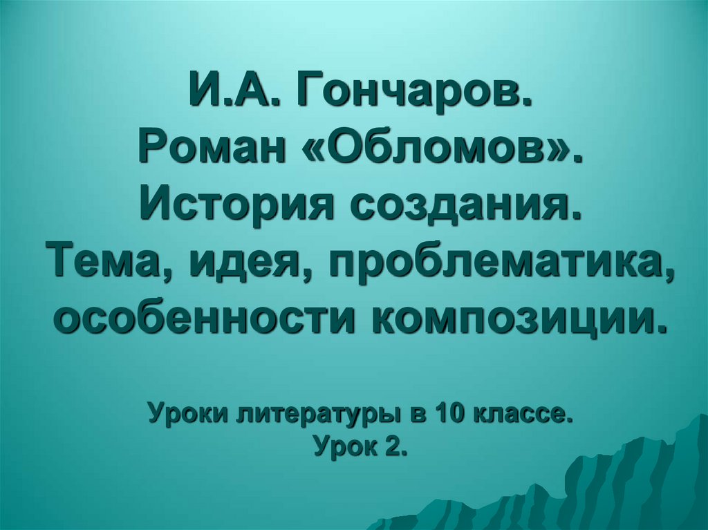 1. И.А. Гончаров. Роман «Обломов».История создания.Тема, идея, проблематика, особенности композиции.Уроки литературы в 10
