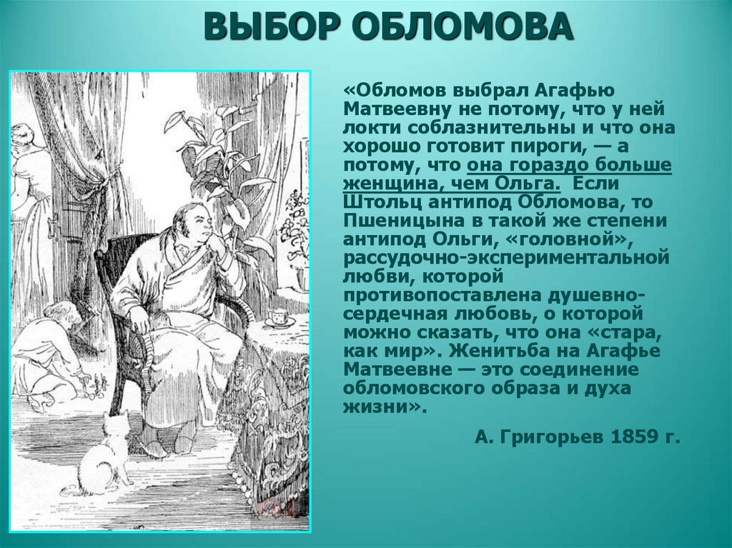 4. В любви к Пшеницыной он находит подлинно обломовскую «норму