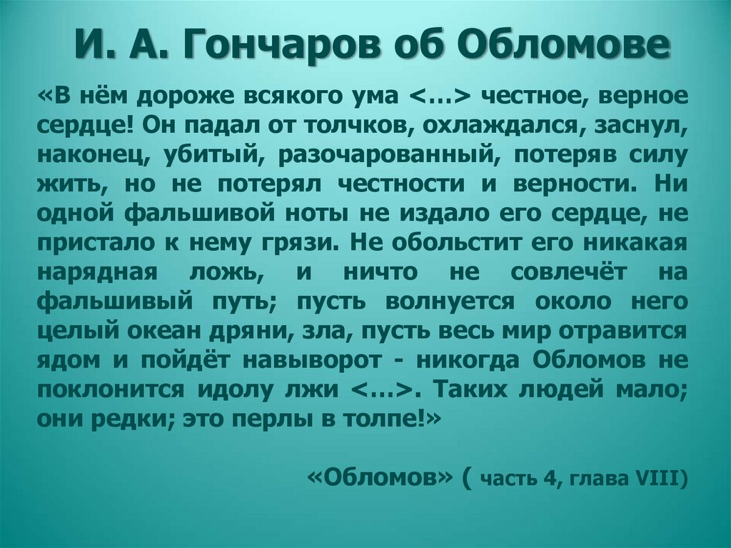 И. А. Гончаров об Обломове«В нём дороже всякого ума <…> честное, верное