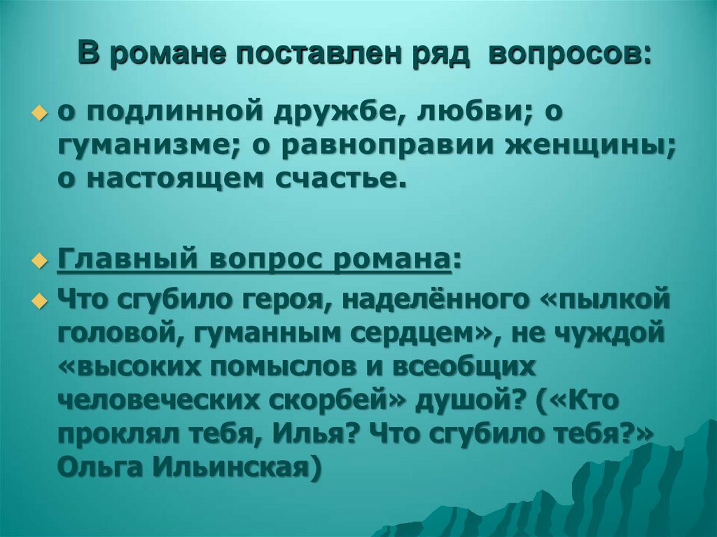 В романе поставлен ряд вопросов:о подлинной дружбе, любви; о