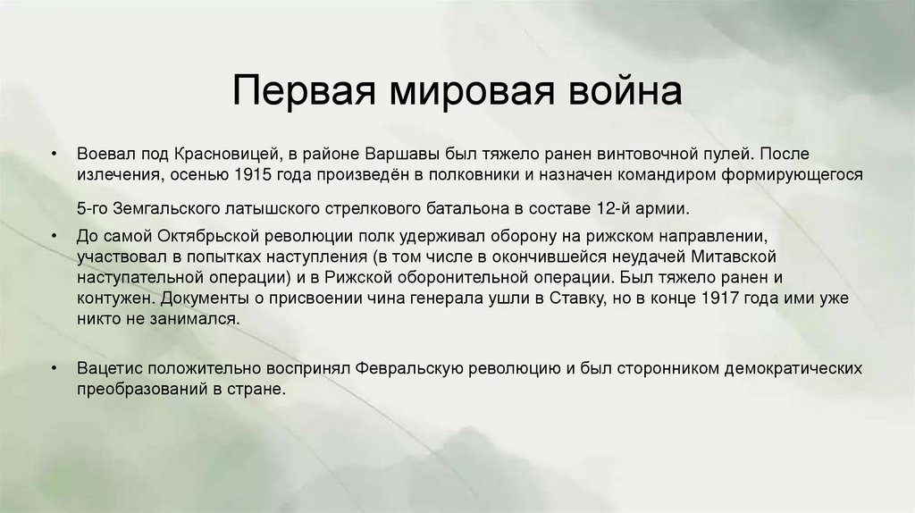 России рассчитывал уйти с дивизией в Латвию. Был убежден, что латышские стрелки — самая