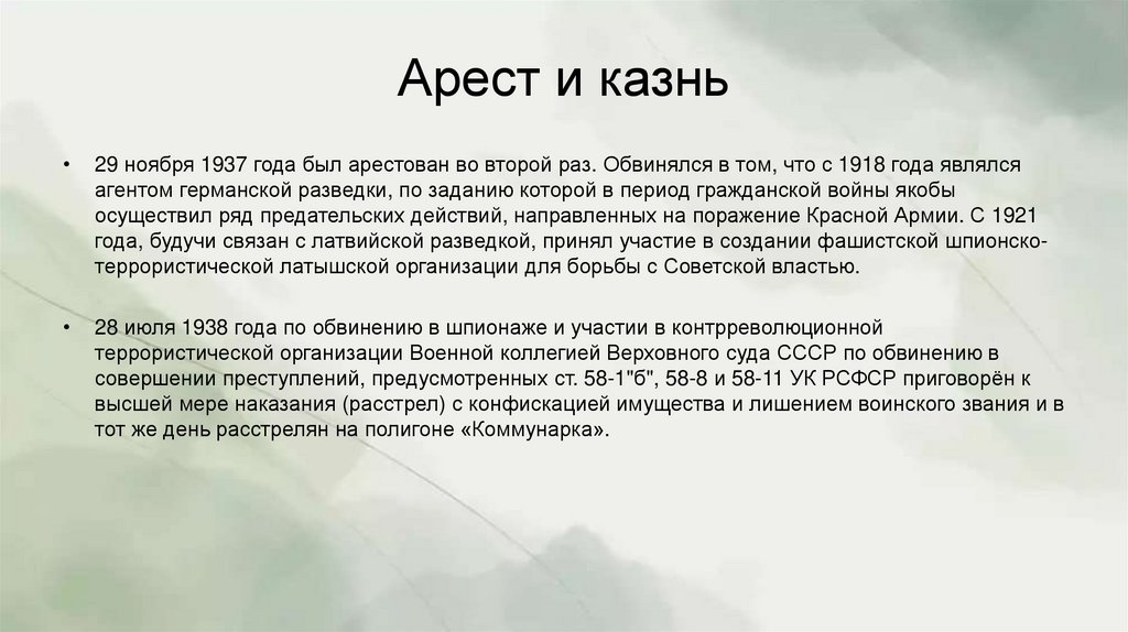 Арест и казнь29 ноября 1937 года был арестован во второй раз. Обвинялся в том, что с 1918 года являлся