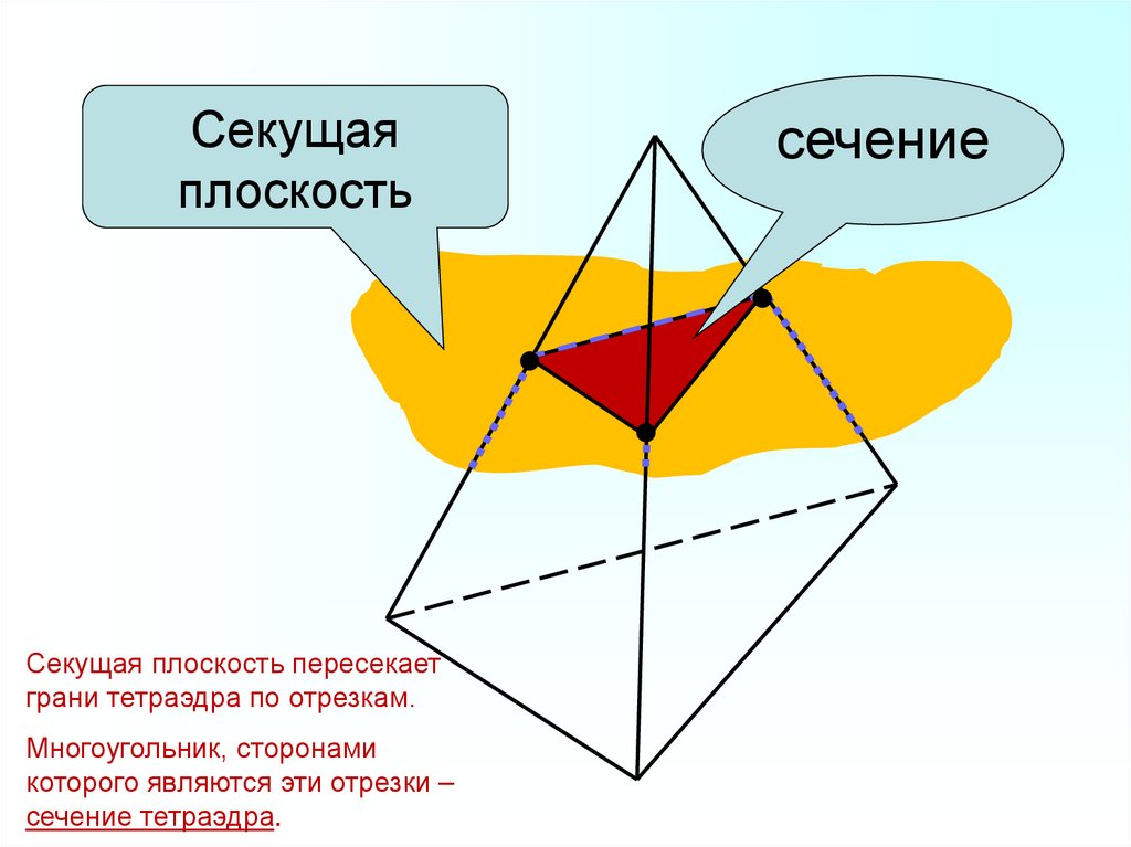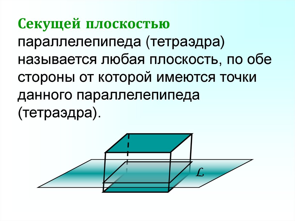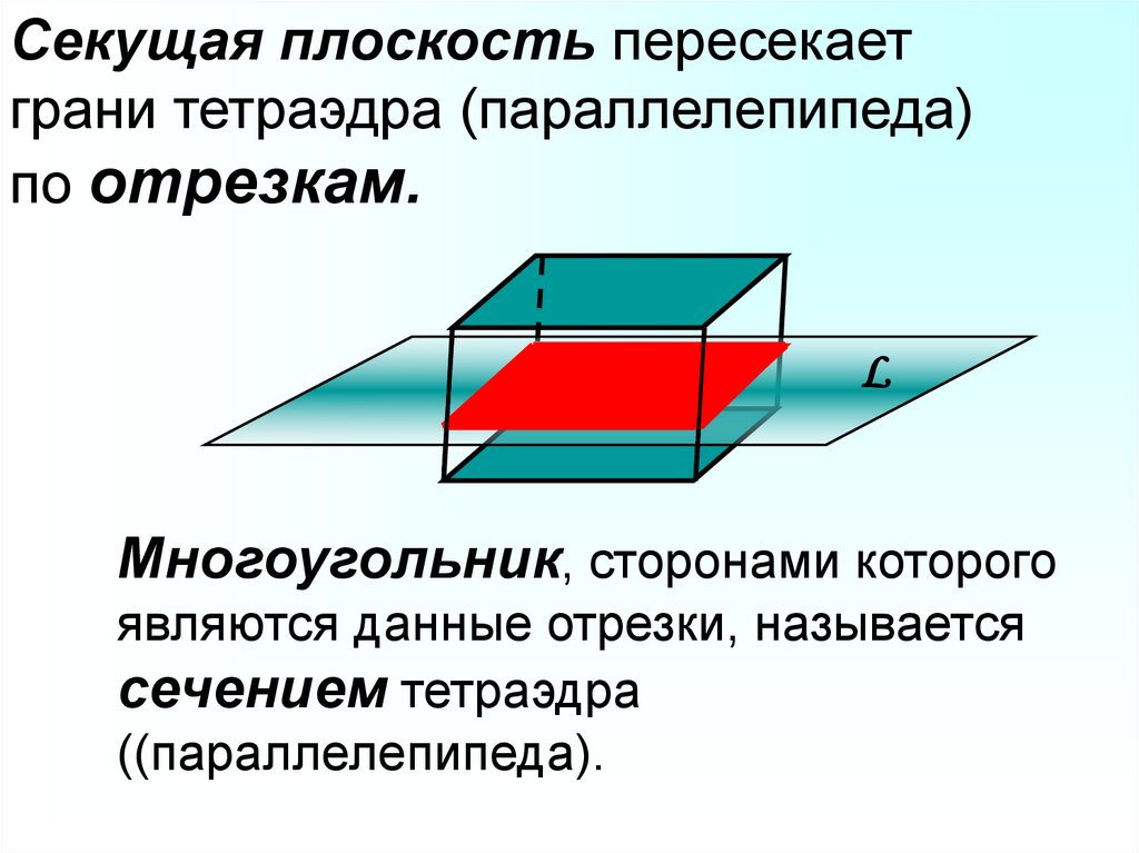 Секущая плоскость пересекаетграни тетраэдра (параллелепипеда)