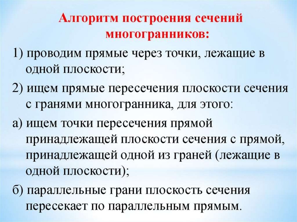 при построении сечений.