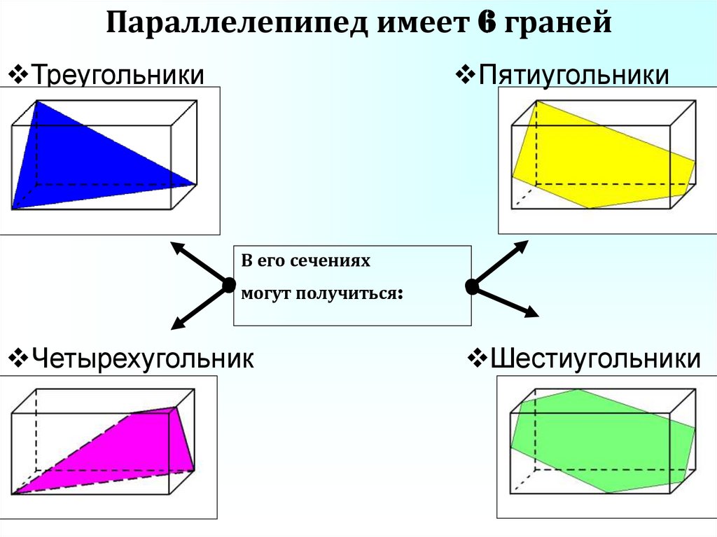 Параллелепипед имеет 6 гранейТреугольники