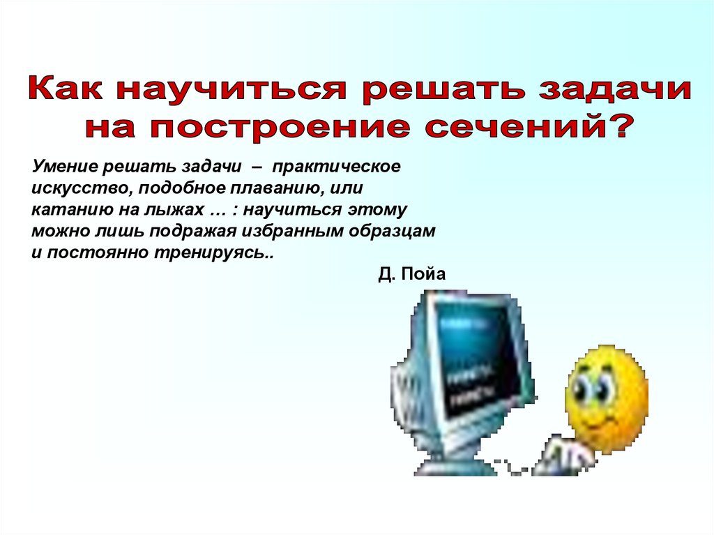 Умение решать задачи – практическоеискусство, подобное плаванию, или