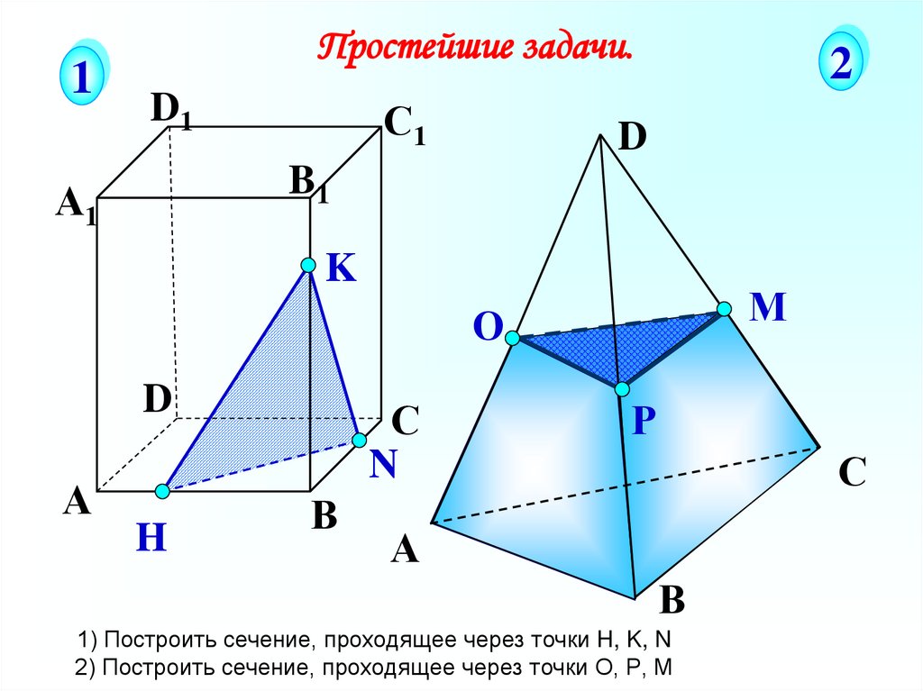 1) Построить сечение, проходящее через точки H, K, N