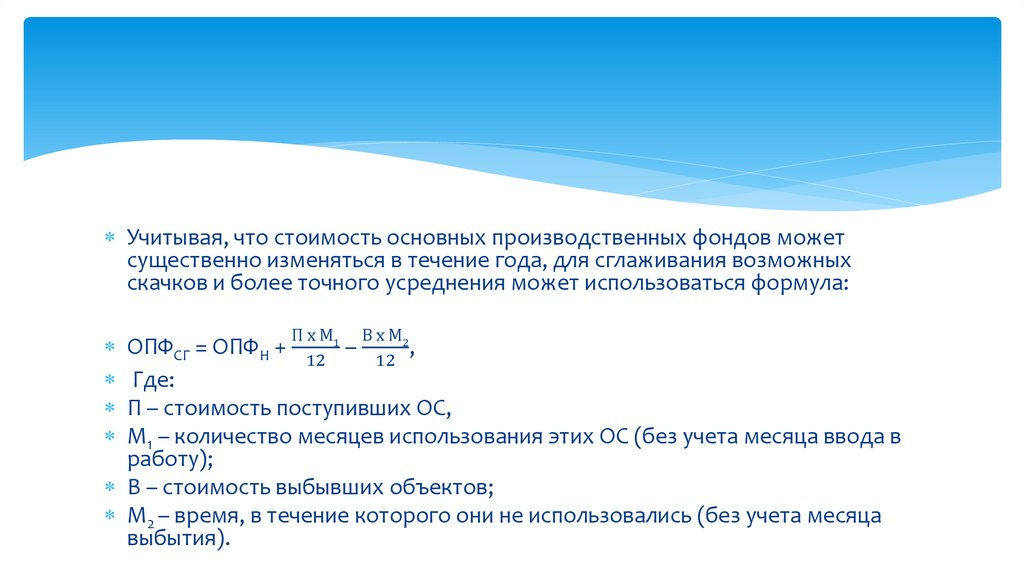 Учитывая, что стоимость основных производственных фондов можетсущественно изменяться в течение года, для сглаживания возможных