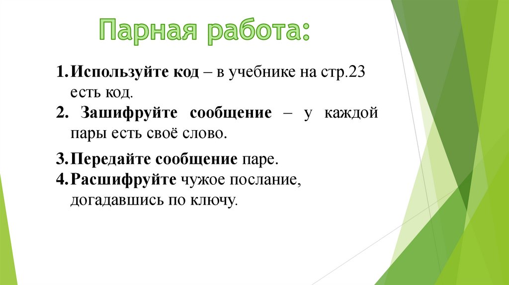 3.Передайте сообщение паре.