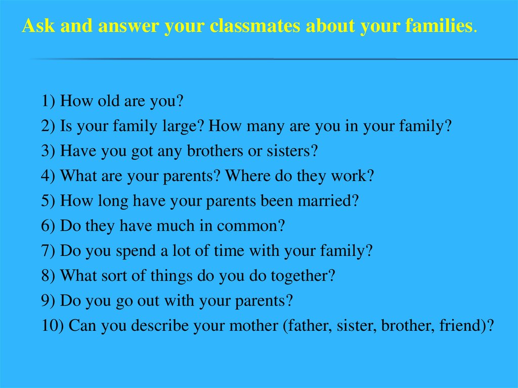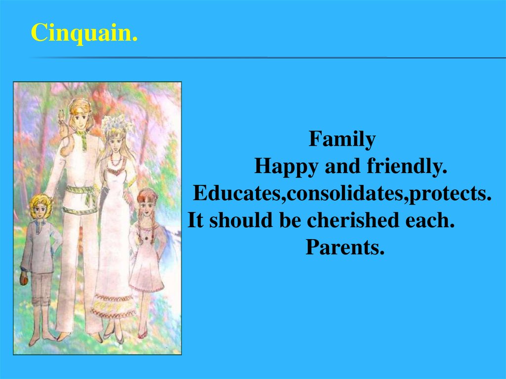 collect information about popular singers. Our family consists of my parents, my sister and I.