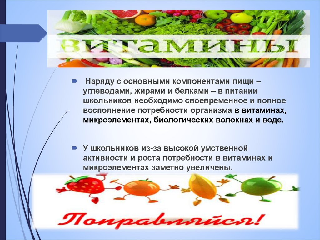 Наряду с основными компонентами пищи –углеводами, жирами и белками – в питании
