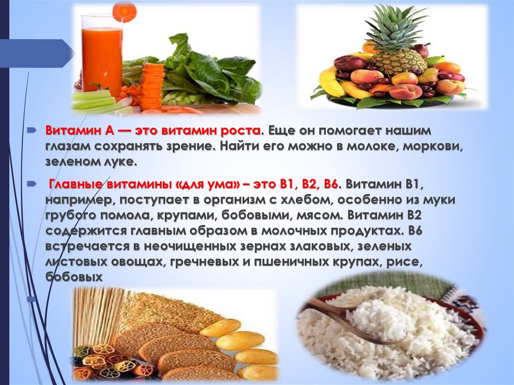 Витамин А — это витамин роста. Еще он помогает нашимглазам сохранять зрение. Найти его можно в молоке, моркови,