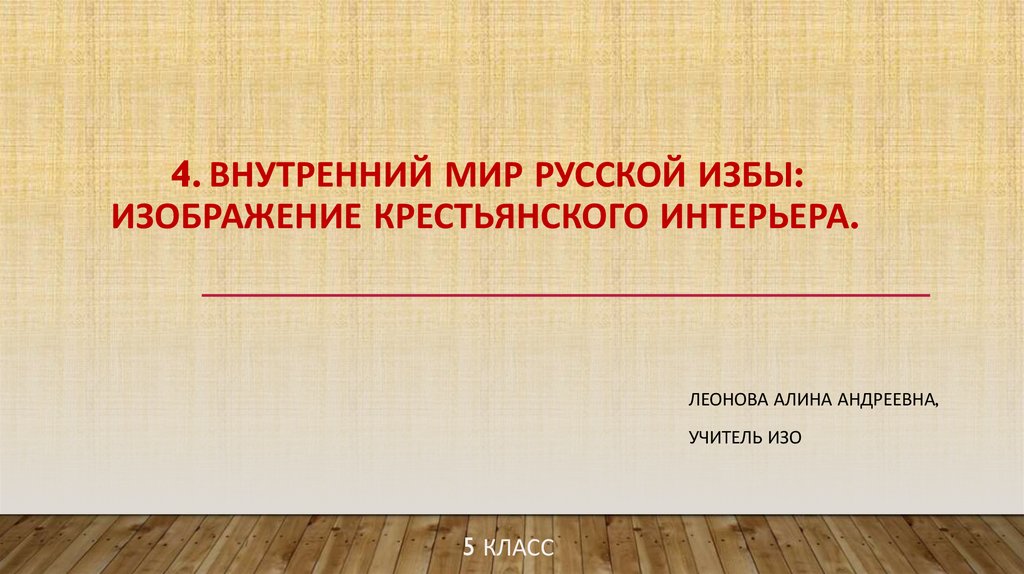 4. ВНУТРЕННИЙ МИР РУССКОЙ ИЗБЫ:ИЗОБРАЖЕНИЕ КРЕСТЬЯНСКОГО ИНТЕРЬЕРА.