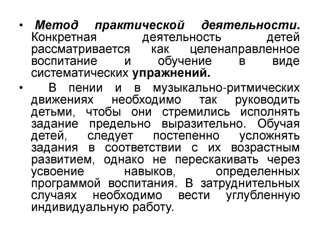 исполнения им песен и музыкальноритмических движений.