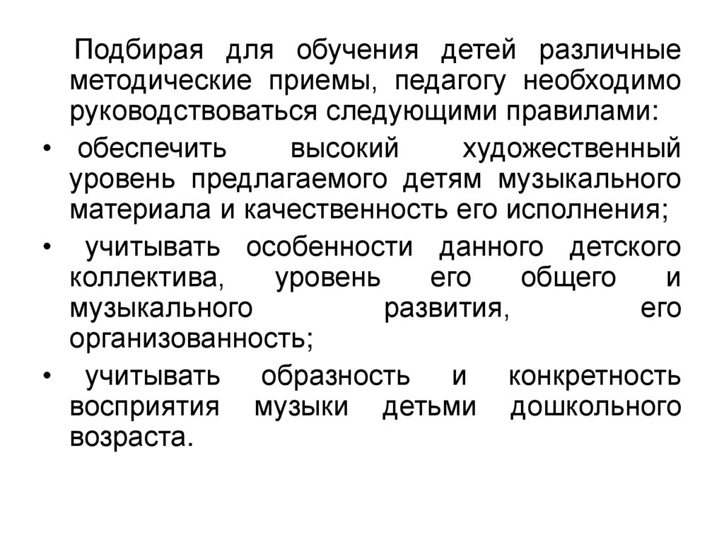 Подбирая для обучения детей различныеметодические приемы, педагогу необходимо