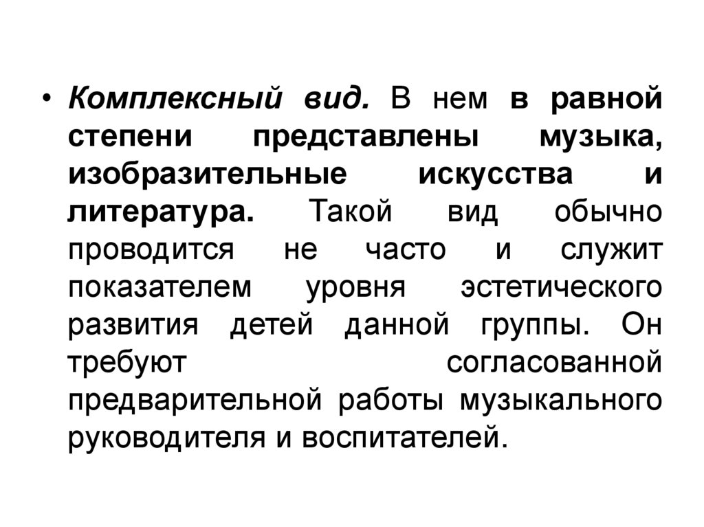 • Комплексный вид. В нем в равнойстепени