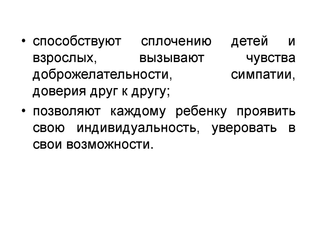 • способствуют сплочению детей ивзрослых,