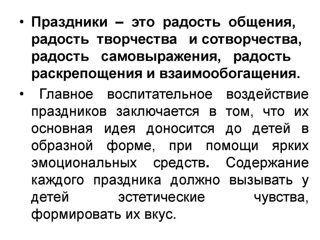 • Праздники – это радость общения,радость творчества и сотворчества,