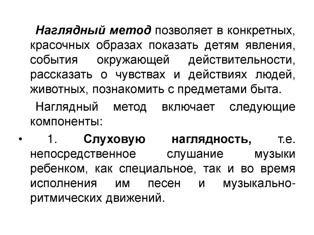 Наглядный метод позволяет в конкретных,красочных образах показать детям явления,