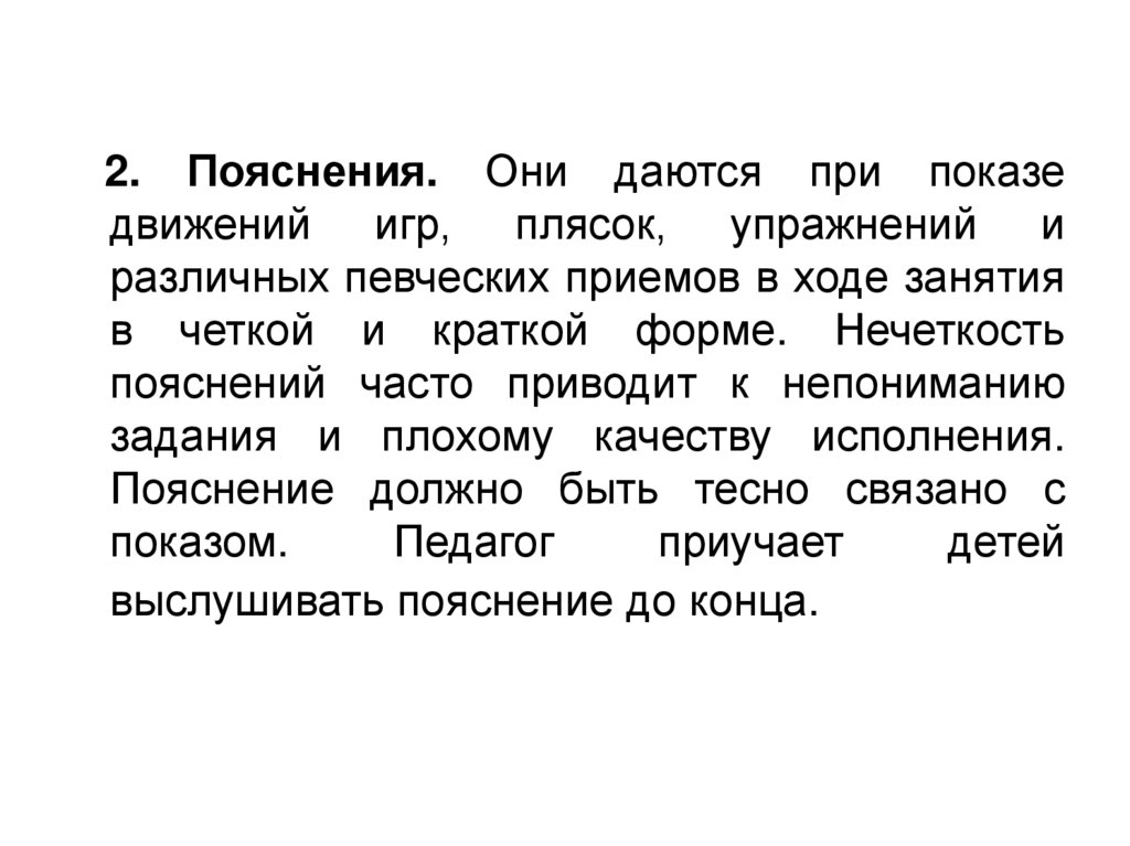 Объяснение должно быть четким, кратким;