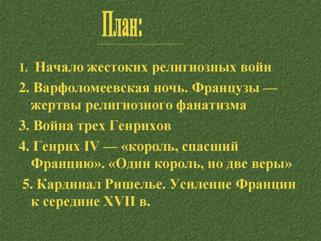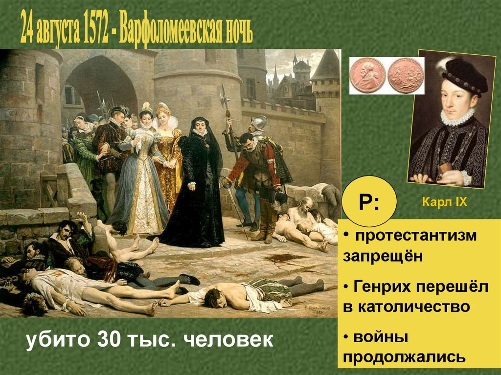 1. Начало жестоких религиозных войн2. Варфоломеевская ночь. Французы —