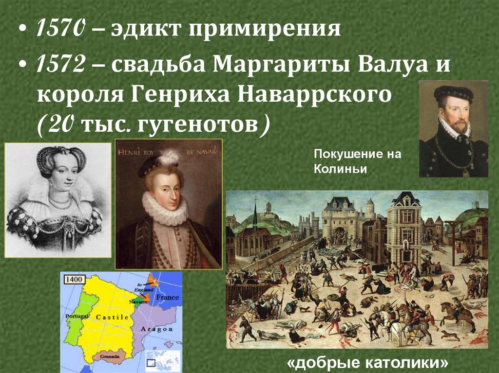 • 1570 – эдикт примирения• 1572 – свадьба Маргариты Валуа и