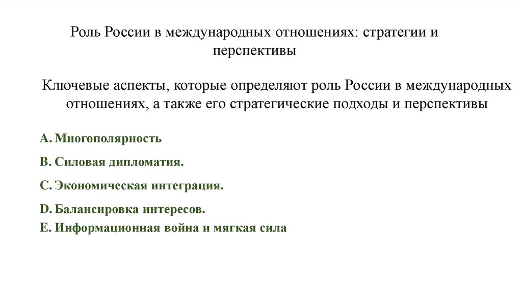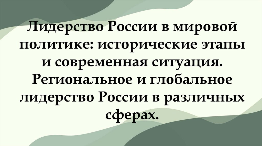 РОССИИ В МИРОВОЙ ПОЛИТИКЕ