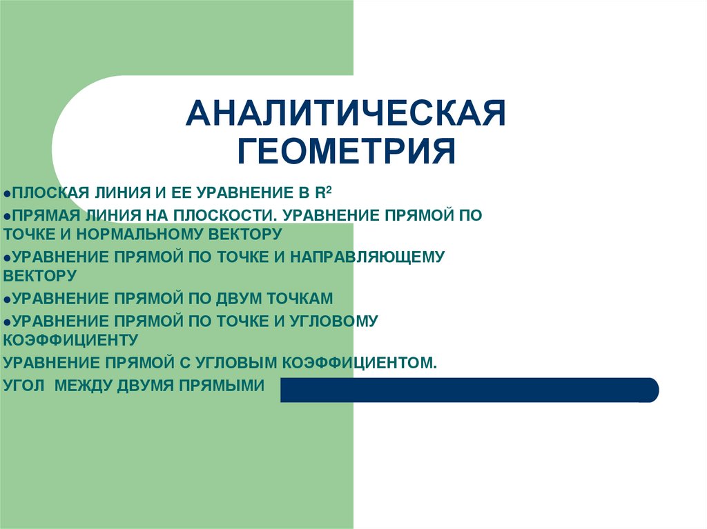 ПЛОСКАЯ ЛИНИЯ И ЕЕ УРАВНЕНИЕ В R2ПРЯМАЯ ЛИНИЯ НА ПЛОСКОСТИ. УРАВНЕНИЕ ПРЯМОЙ ПО