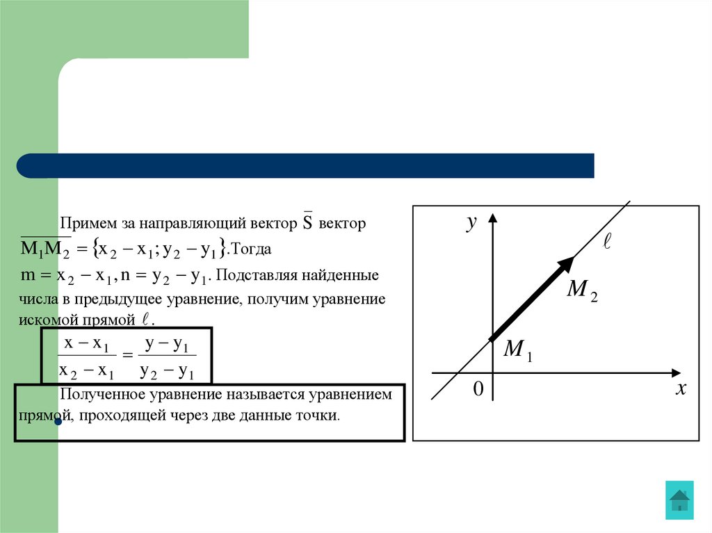 Примем за направляющий вектор S векторM1M 2 x 2 x1 ; y 2 y1 .Тогда